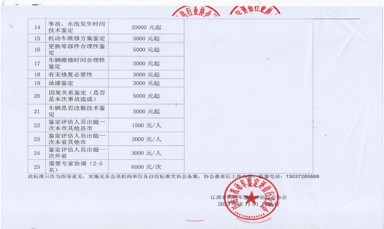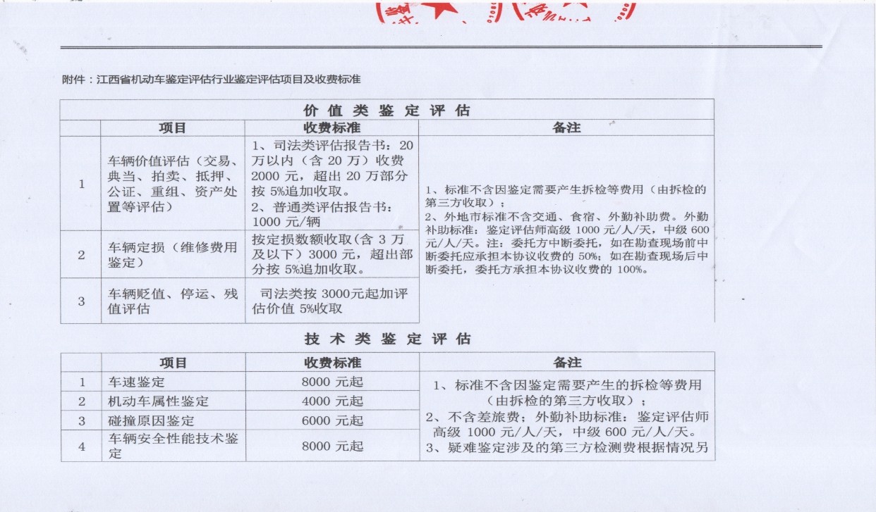 江西省机动车鉴定评估行业协会发布《鉴定评估项目收费标准指导意见》
